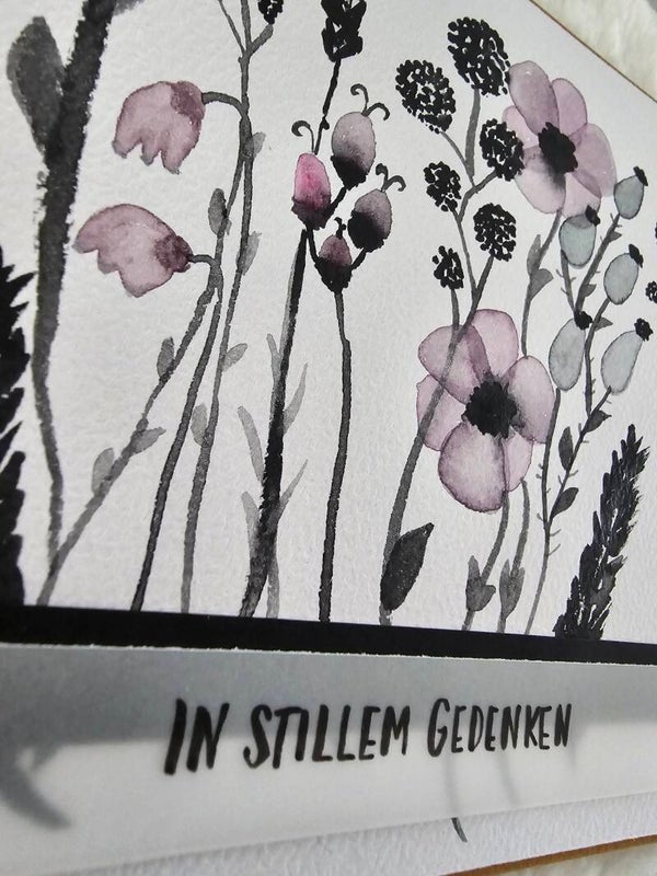 Meine aus 250g Kraftpapier, umweltfreundlichen Karten haben eine Größe von 15x15 cm. Deine Karte liefere ich dir mit einem dazu passenden Umschlag. Befindet sich ein Aquarell auf der Karte ist dieses von mir echt gemalt und niemals ein Druck.