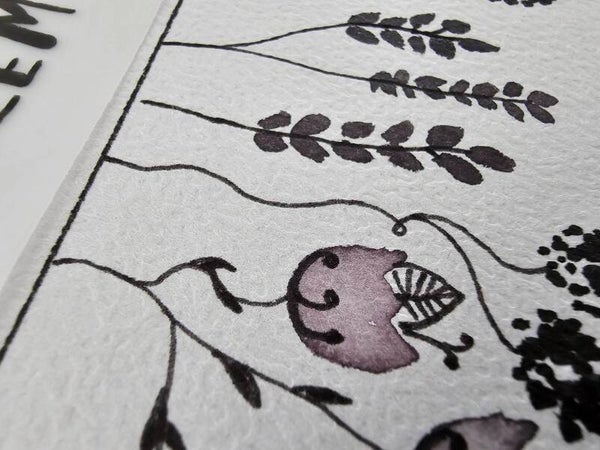 Meine aus 250g Kraftpapier, umweltfreundlichen Karten haben eine Größe von 15x15 cm. Deine Karte liefere ich dir mit einem dazu passenden Umschlag. Befindet sich ein Aquarell auf der Karte ist dieses von mir echt gemalt und niemals ein Druck.