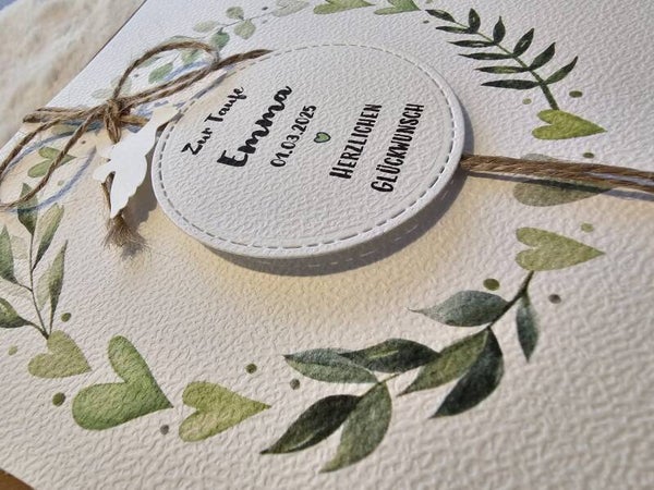 Gerne personalisiere ich dir deine Karte mit Namen oder Daten, je nach Wunsch, kostenlos.