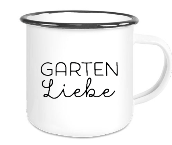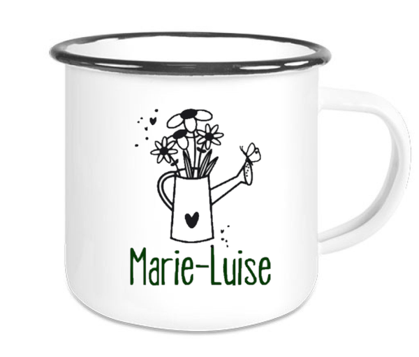 Emaille Tasse "Zwischen den Beeten" mit Namen