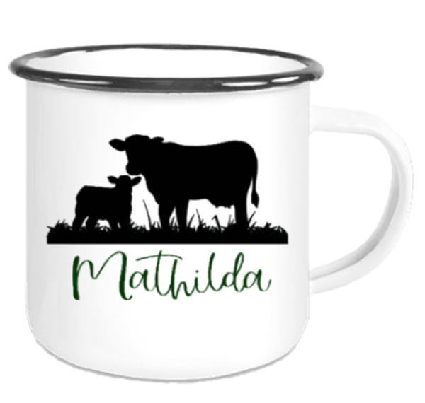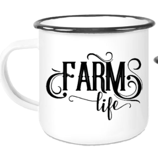 Beschreibung: Emaille-Tasse für Farm- und Landleben-Liebhaber