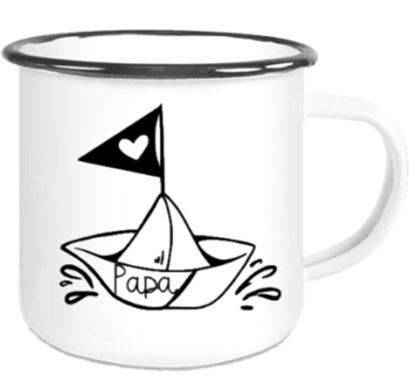 Beschreibung: Emaille-Tasse für Papas – Ein Geschenk von Herzen