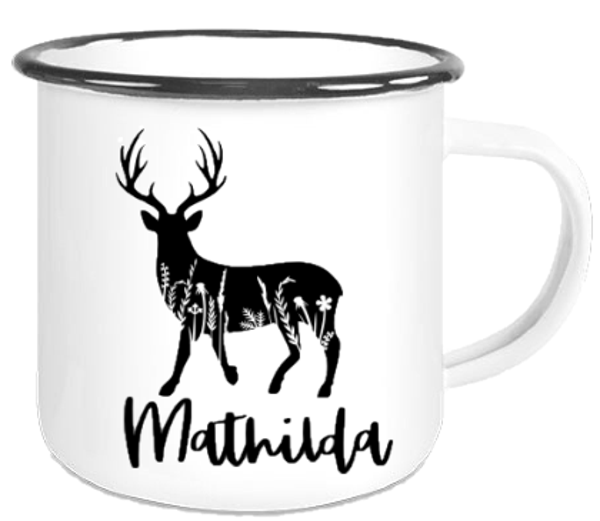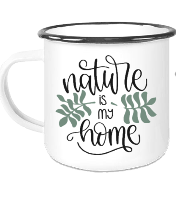 Beschreibung: Emaille-Tasse für Naturliebhaber – Ein Stück Natur zum Mitnehmen