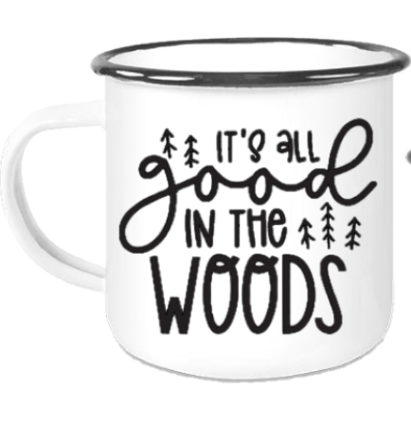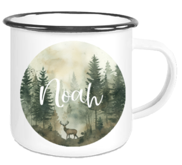 Beschreibung: Emaille-Tasse für Naturliebhaber – Ein Stück Natur zum Mitnehmen