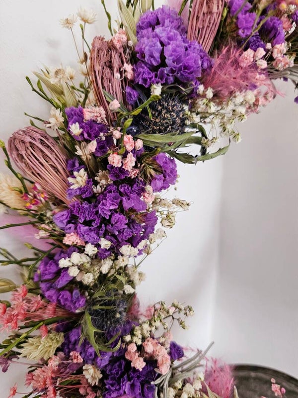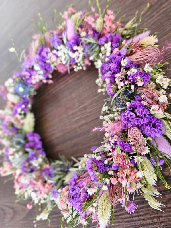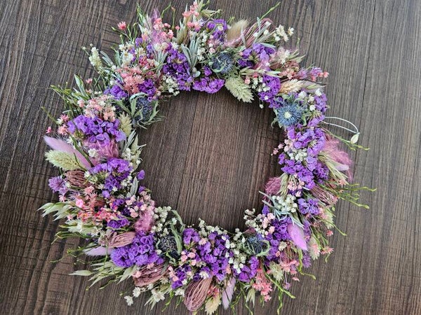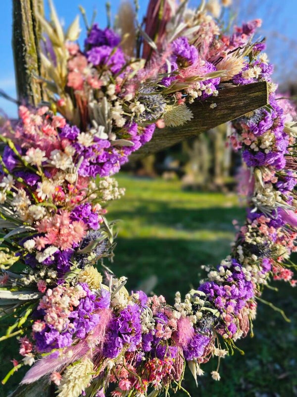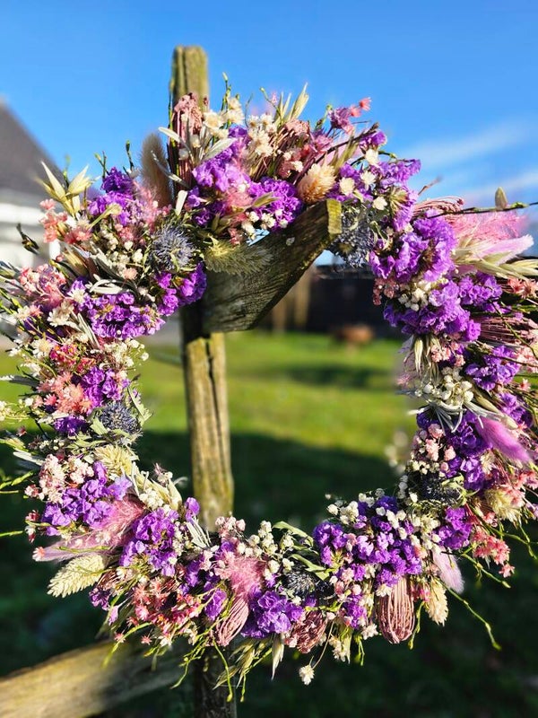 Jeder Kranz ist ein Unikat und kann eine wundervolle Auswahl an Trockenblumen und