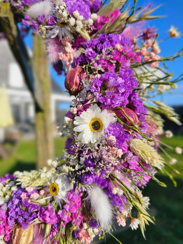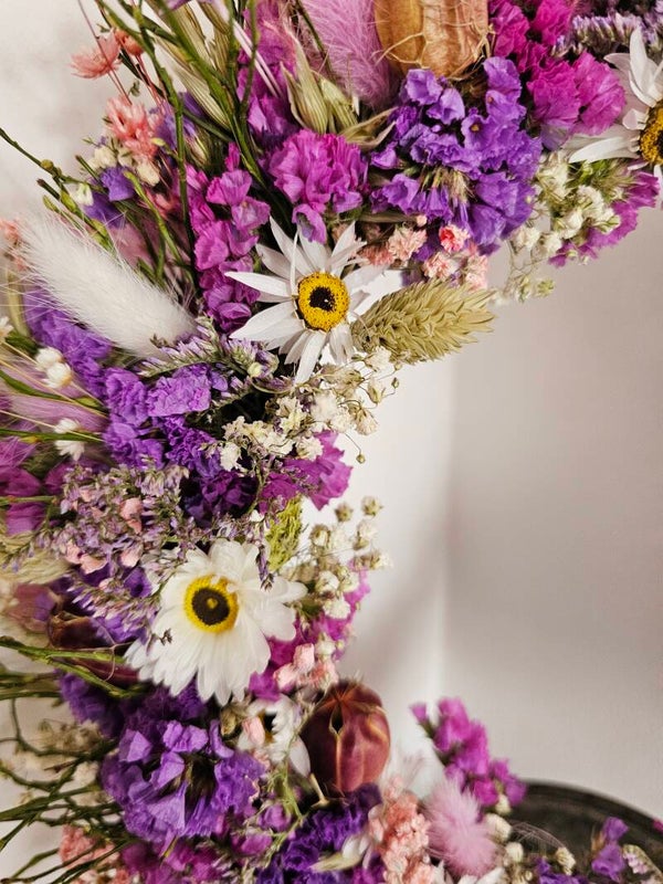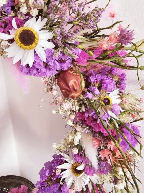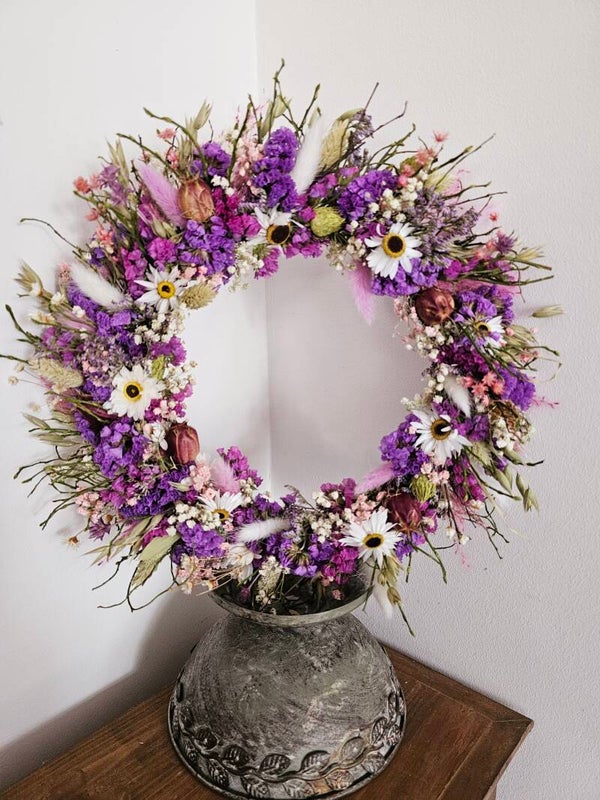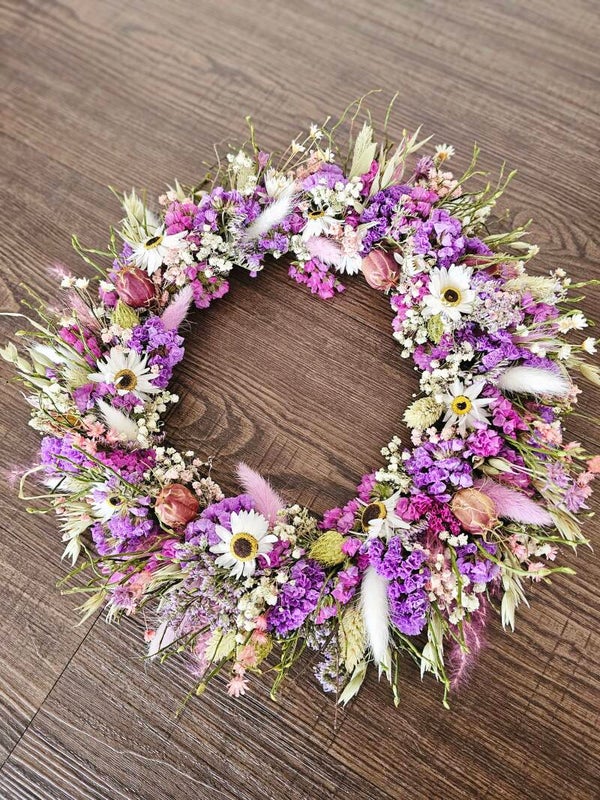 Jeder Kranz ist ein Unikat und kann eine wundervolle Auswahl an Trockenblumen und