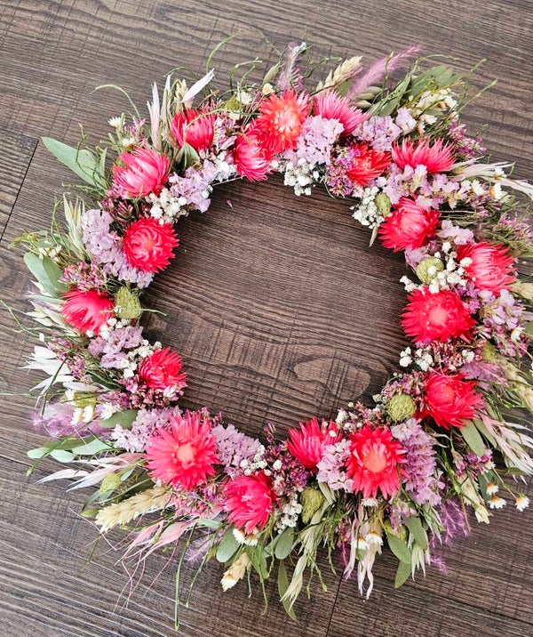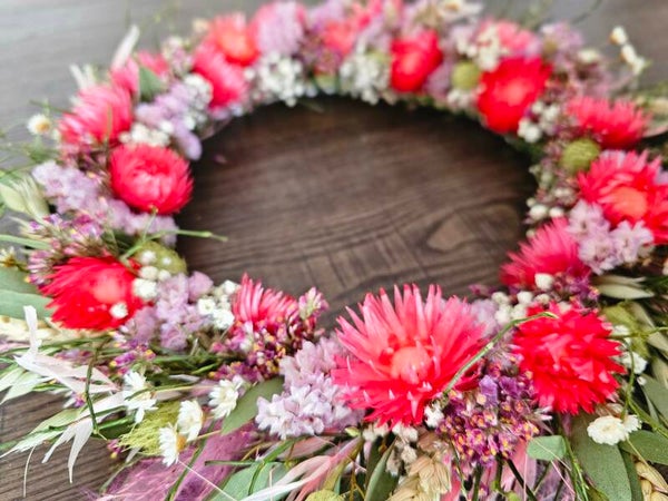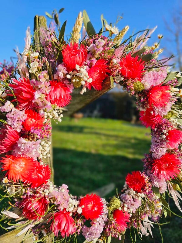 Jeder Kranz ist ein Unikat und kann eine wundervolle Auswahl an Trockenblumen und