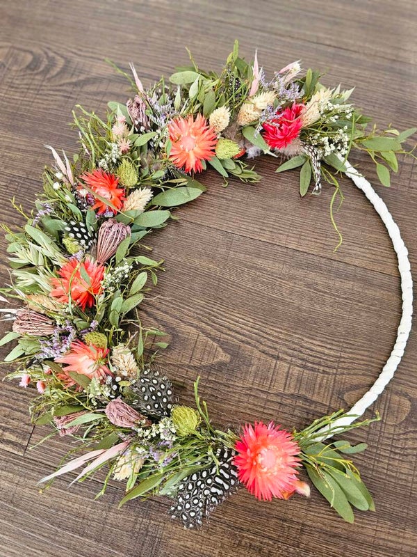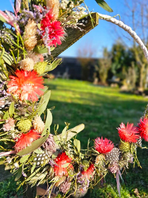 Jeder Kranz ist ein Unikat und kann eine wundervolle Auswahl an Trockenblumen und