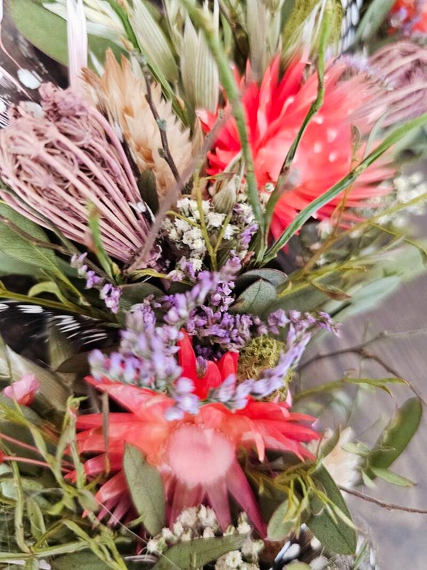⚠️ Trockenblumen und Naturmaterialien sind leicht entzündlich – bitte von offenen Flammen, Hitzequellen und Funken fernhalten.