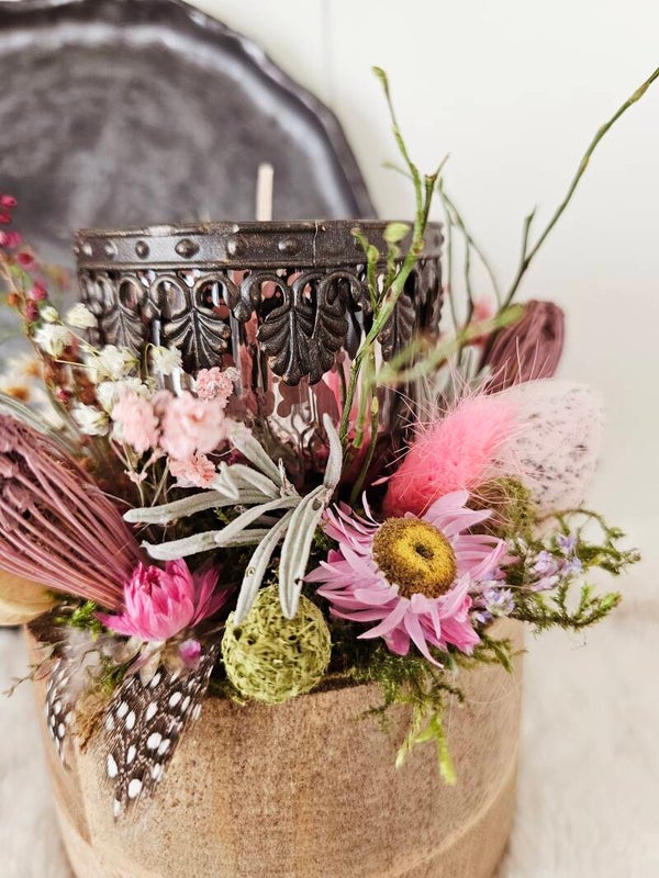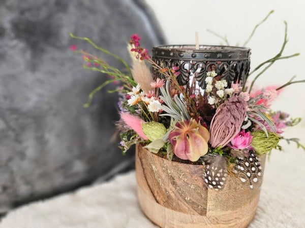 ⚠️ Trockenblumen und Naturmaterialien sind leicht entzündlich – bitte von offenen Flammen, Hitzequellen und Funken fernhalten.