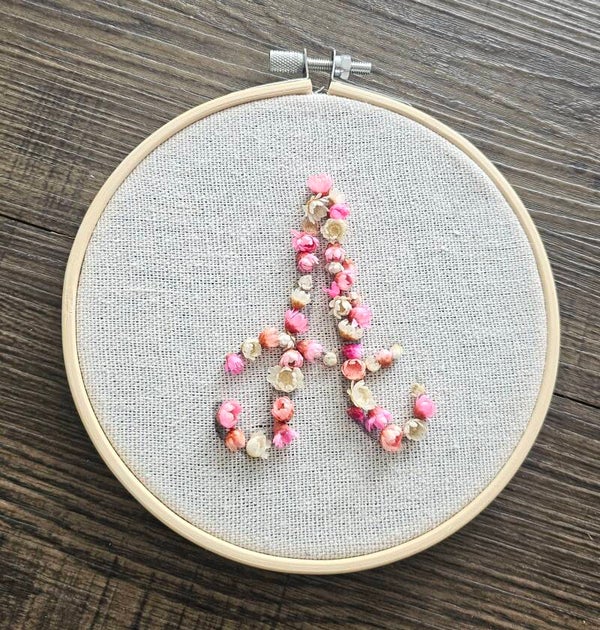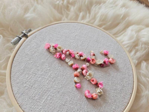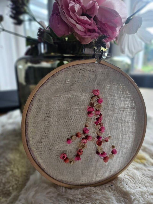 Gestalte dein eigenes Trockenblumen-Monogramm im Stickrahmen